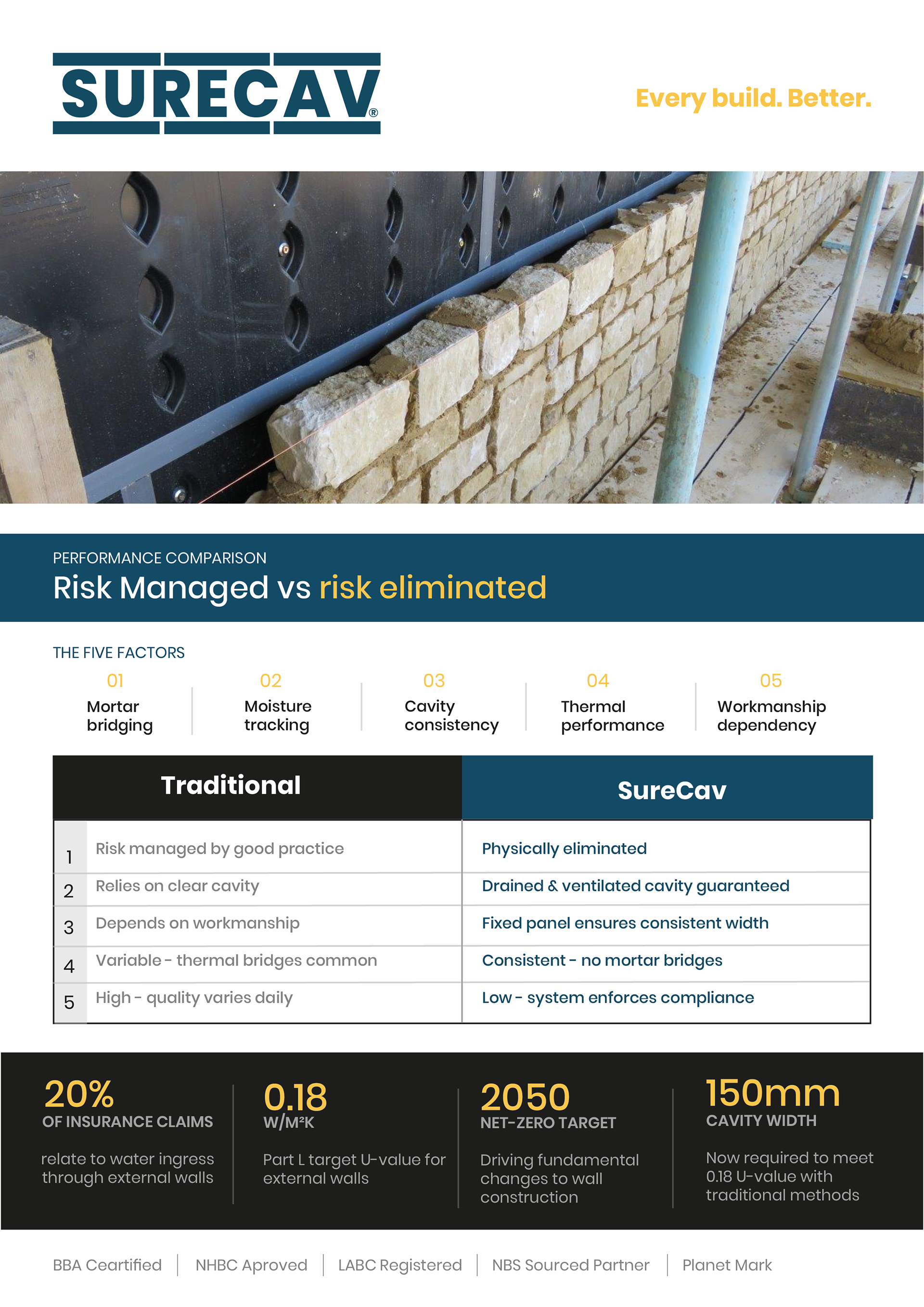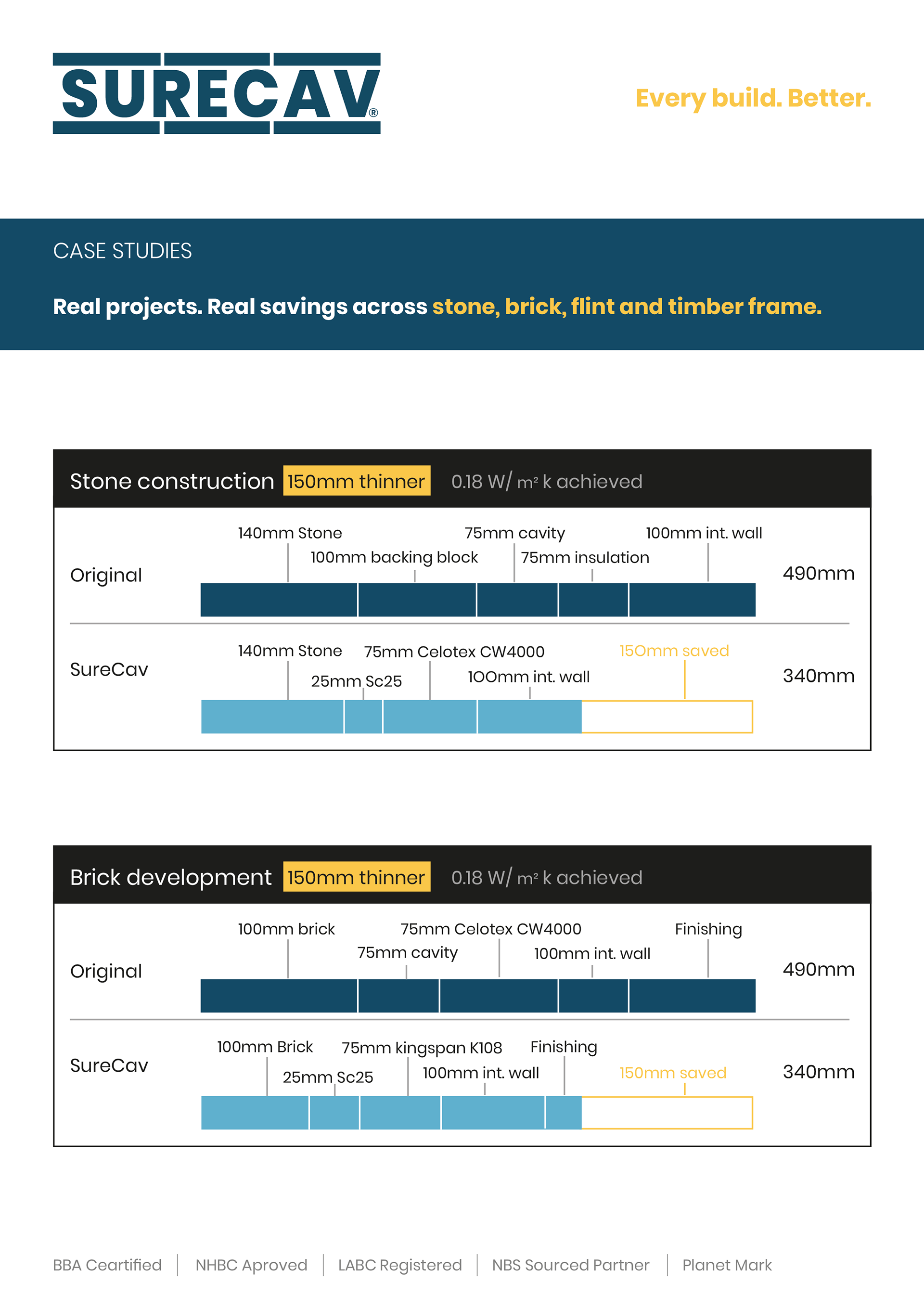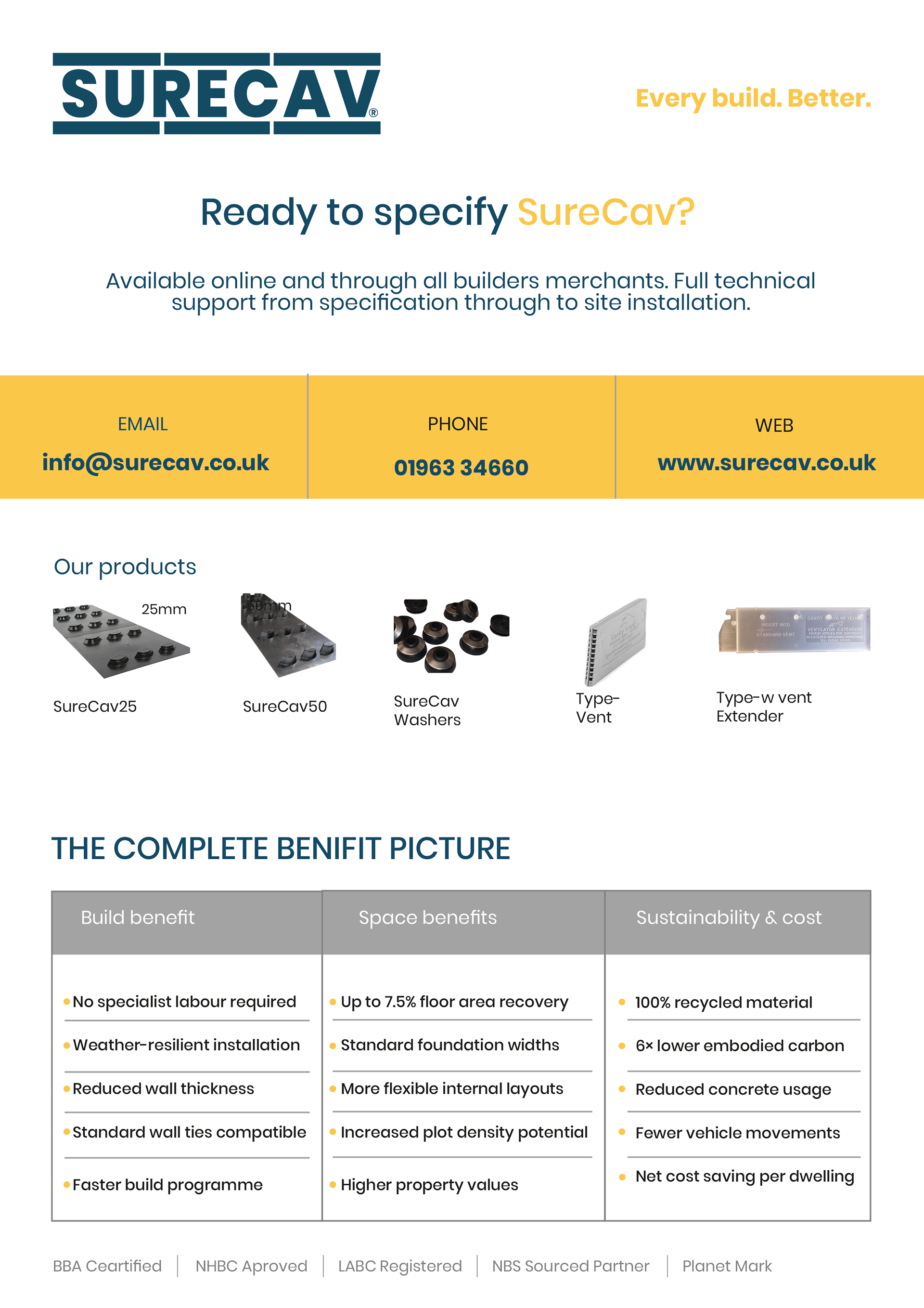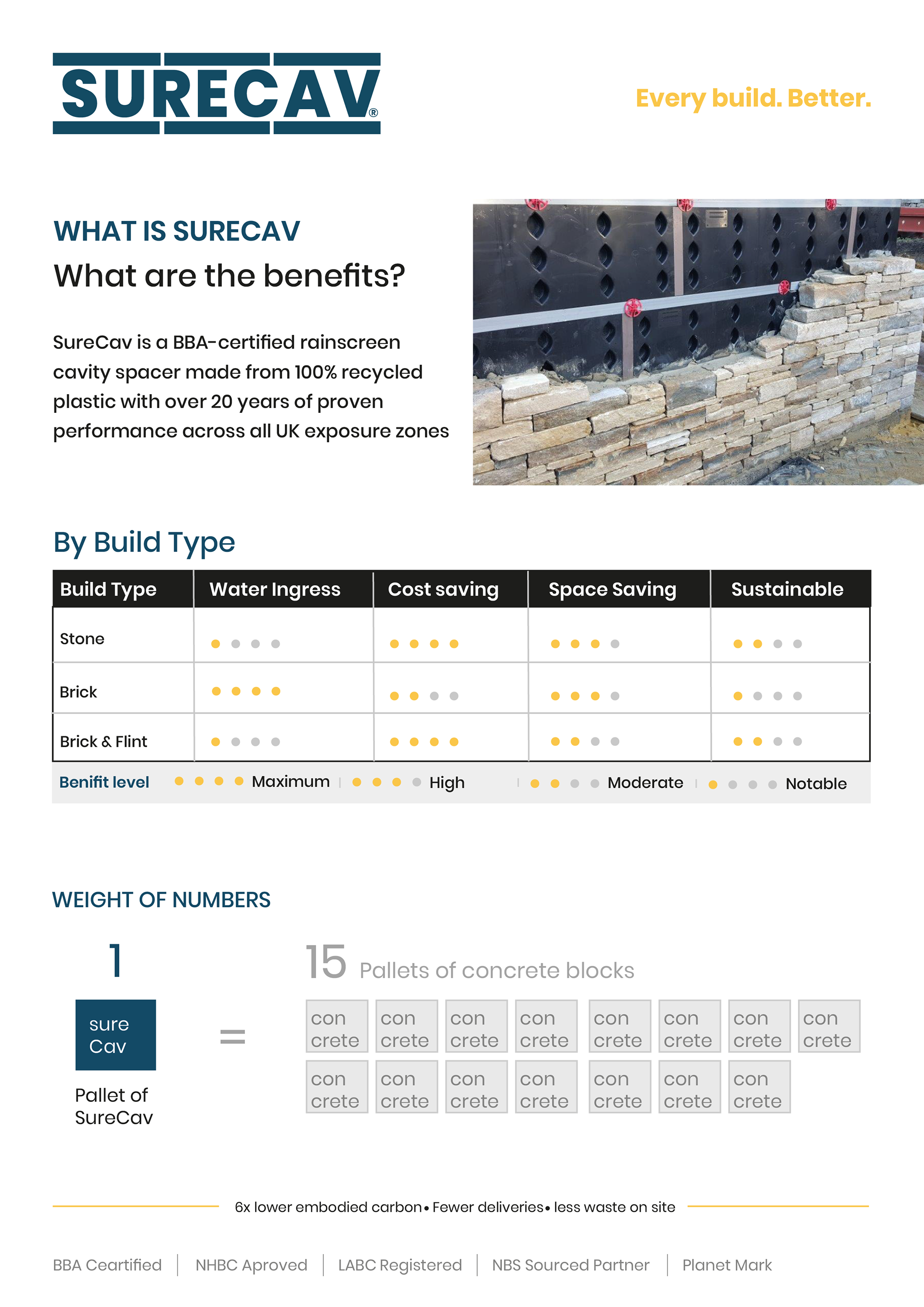 SureCav is a British manufacturer with over twenty years of impact on the way buildings are made. Their cavity spacer system sits hidden inside walls across the UK - unseen, but doing essential work. The project involved taking a product with genuine technical depth and giving it the visual language it deserved. A full brand guidelines document was developed from the ground up, alongside a reimagined product brochure - drawing on CPD material, real case studies and hard performance data to tell a clearer, more compelling story. The brochure was created for an upcoming event and the guidelines were created to help create some consistency in the brand's image. Both documents were delivered as print-ready PDFs and packaged source files, built to last as long as the walls they describe.